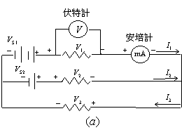 為了說明,考慮圖3的電路(忽略電池的內電阻),設流經AB,DC,FG之電流各為